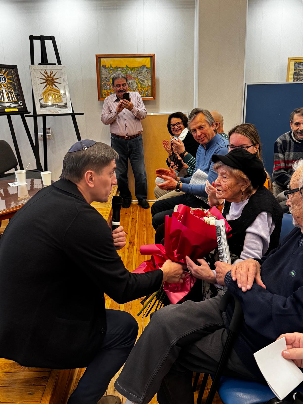 Frida Reizman, Ghetto survivor presented with flowers for her 90th birthday Photo credit: The Together Plan