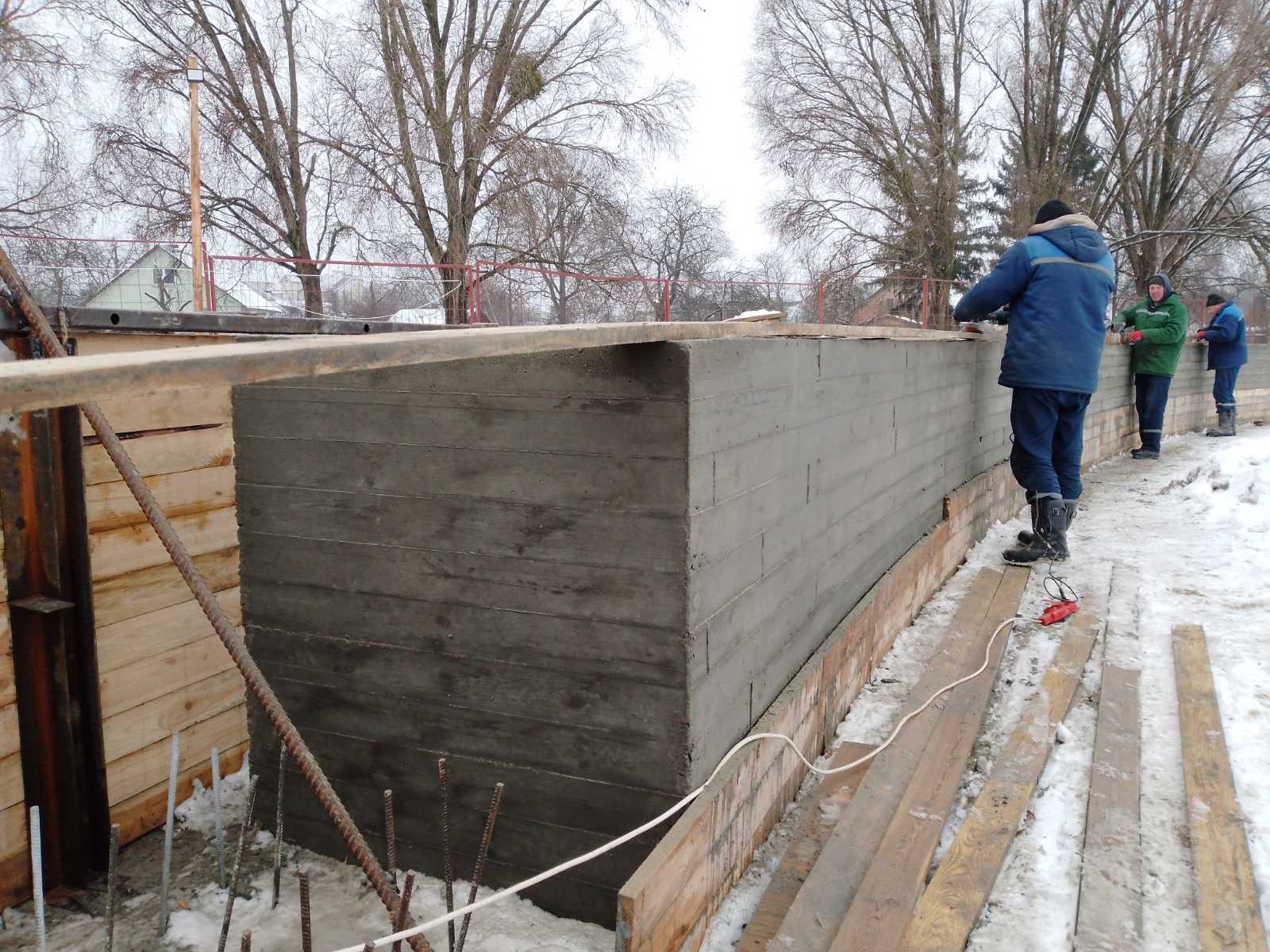 Construction of the walls that will surround the gravestones
