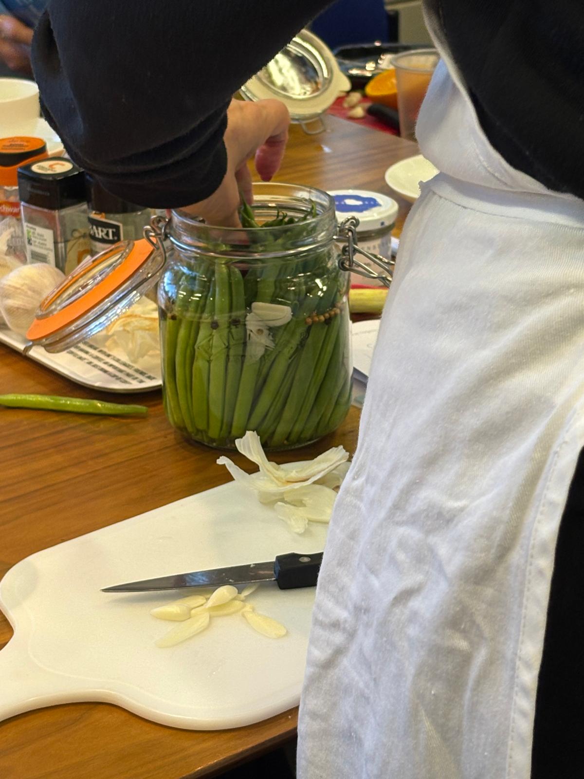 The focus of the workshop was the age-old Eastern European craft of salt pickling, demonstrated through the preparation of traditional pickled green beans. Bowls filled with garlic cloves, bay leaves, mustard seeds, coriander seeds, and peppercorns were passed around, and with the final addition of fresh dill, the room quickly filled with the heady aromas of the Old World. As the fragrances intensified, so too did the energy in the room; conversations grew animated, memories surfaced, and a sense of shared heritage settled comfortably among the participants.