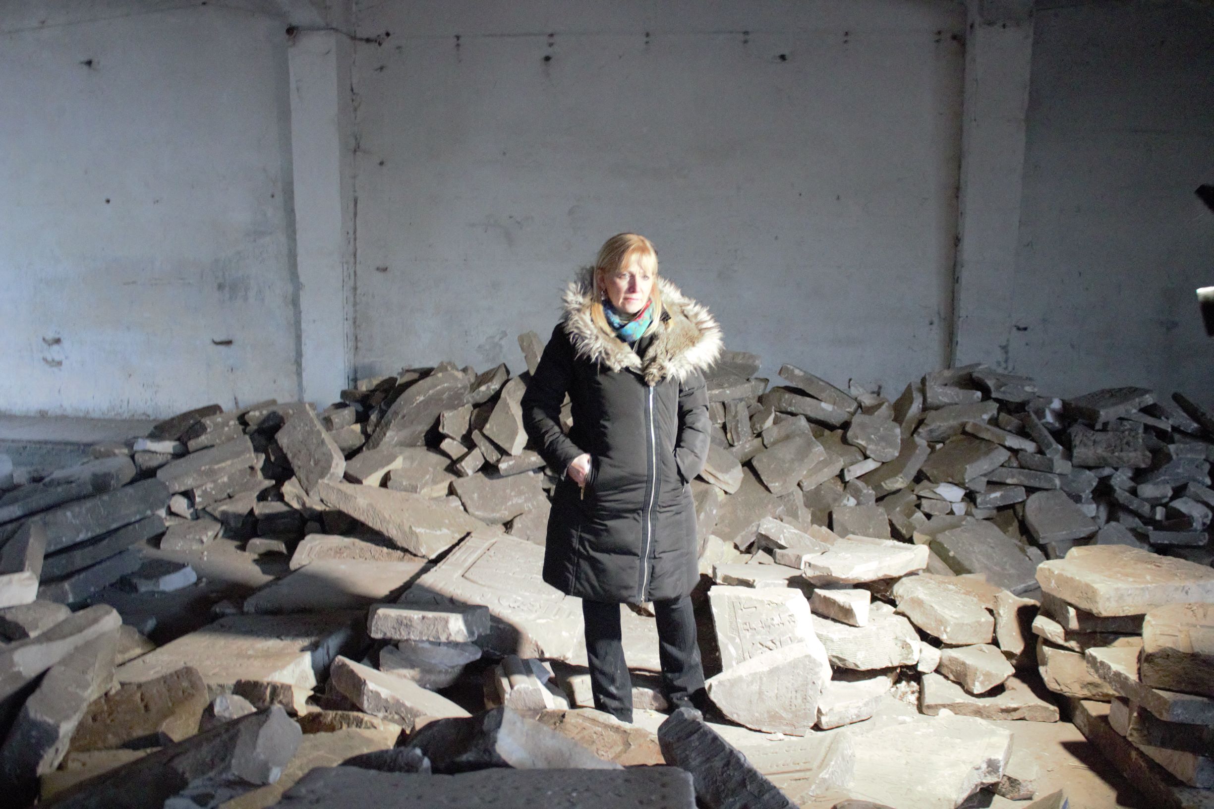 - Debra in Brest – among the gravestones that had mysteriously been relocated, January 2020 Photo credit: The Together Plan