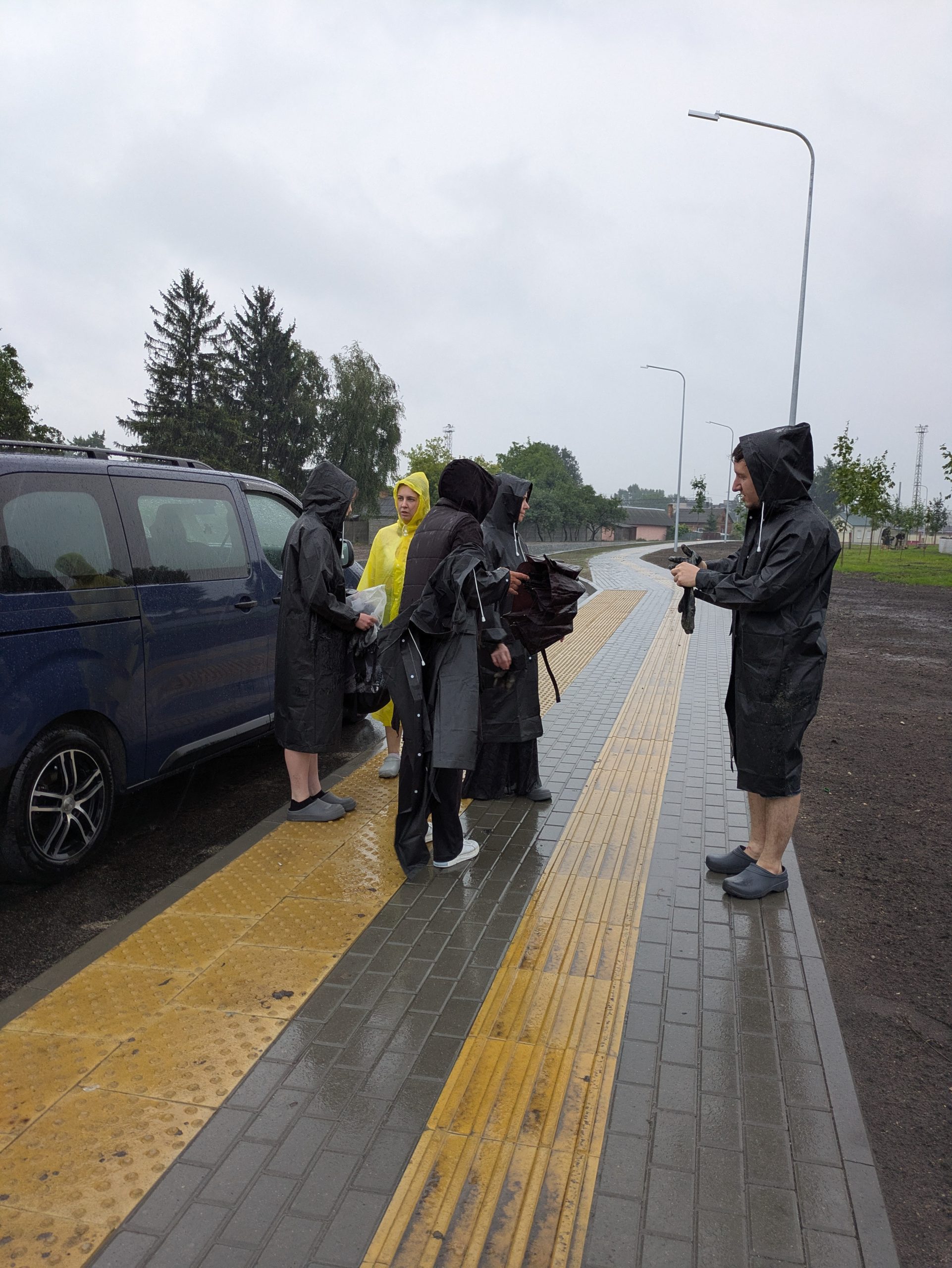- Some of the team about to work at the site in the rain Photo credit: The Together Plan