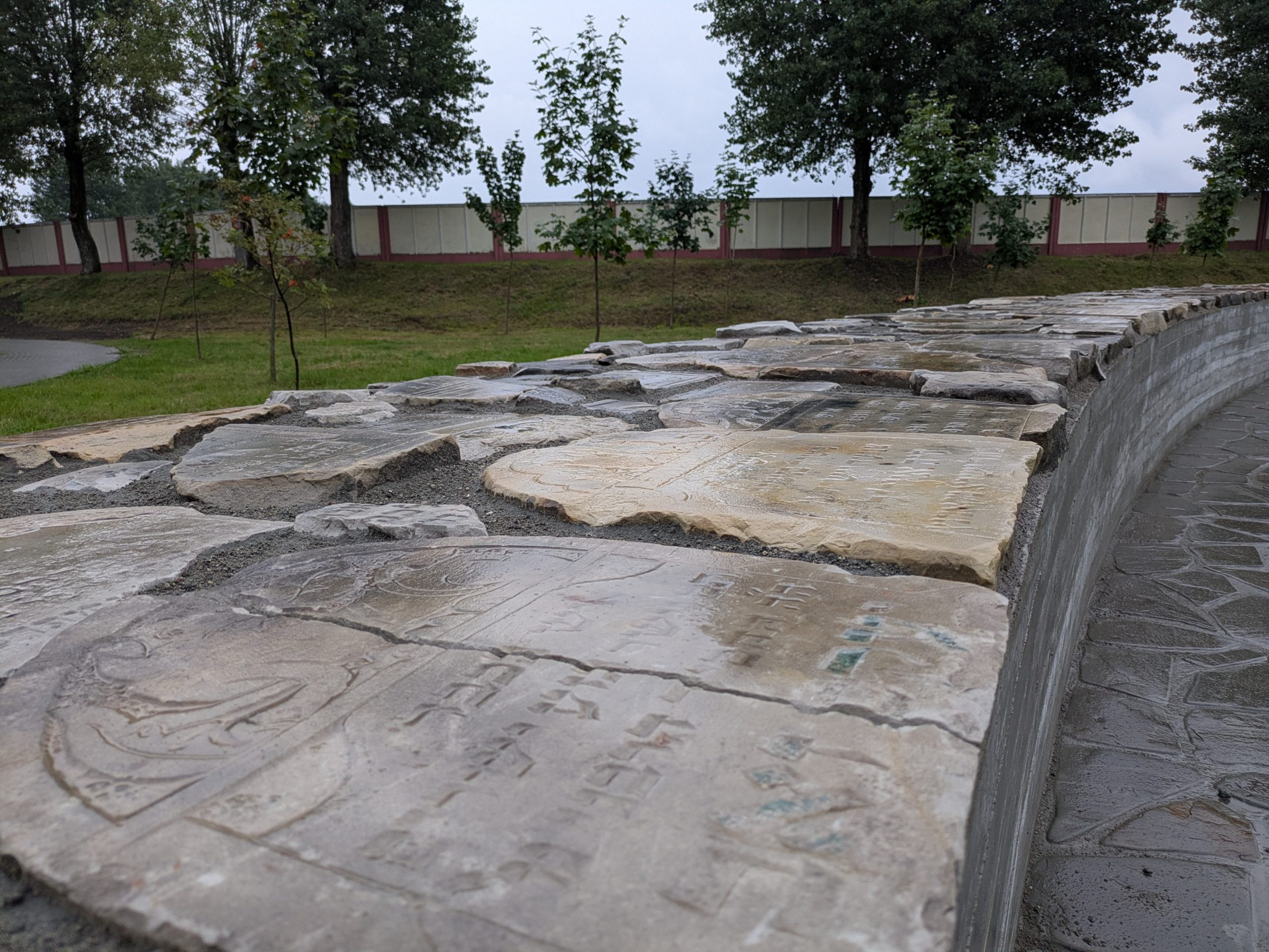 - Top of one of the memorial walls in the rain, the day before the opening Photo credit: The Together Plan