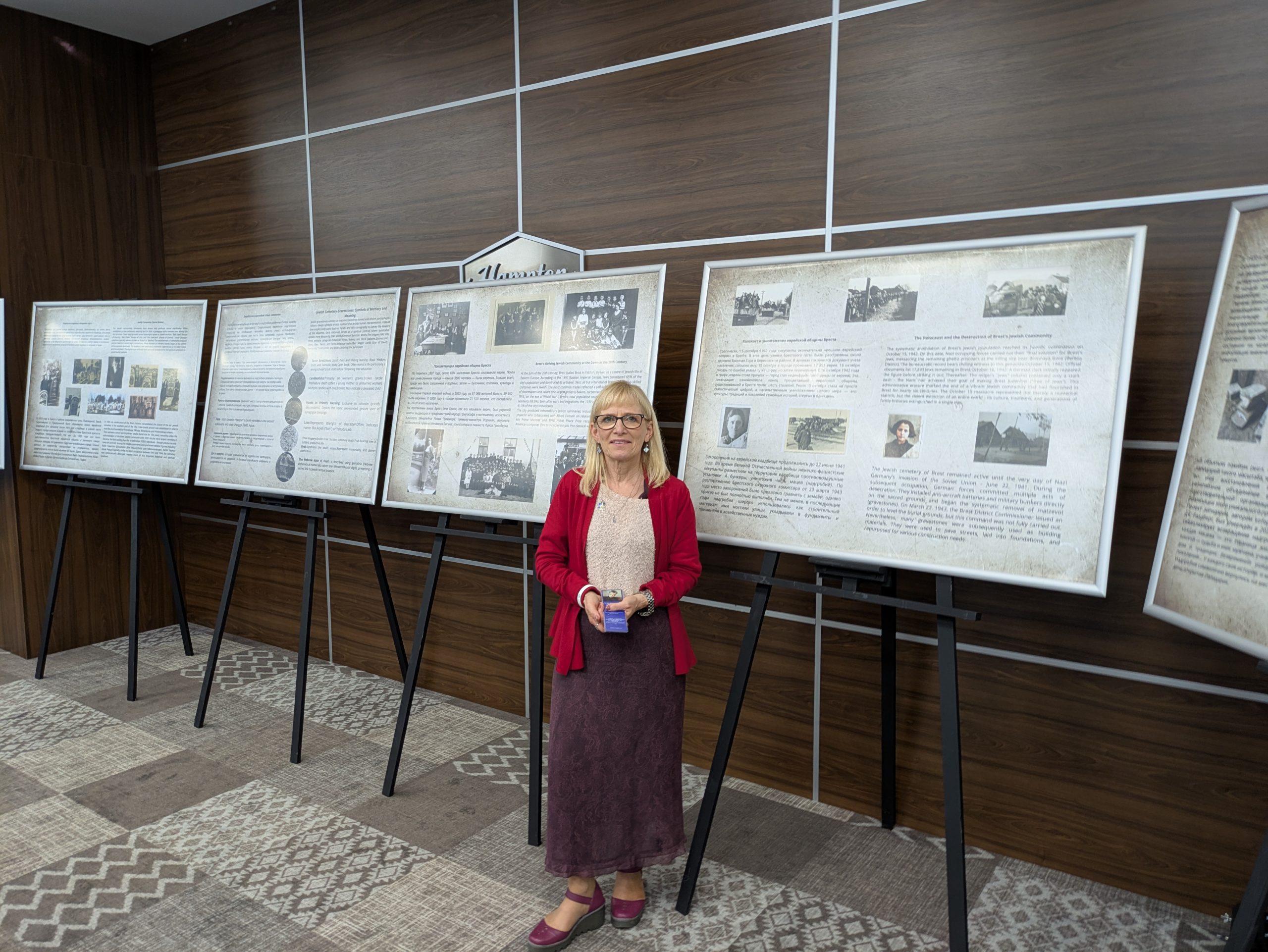 I watched in awe as our team meticulously organised every detail, transporting a travelling exhibition and everything needed for the opening reception. We were joined in Brest by a small, heartfelt delegation from the UK and the USA, including Kathleen Balgley, an author and educator whose father was born in Brest. For her, this journey was a poignant return to her roots.