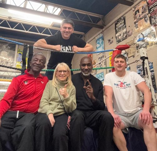 Maurice Hope, Debra Brunner, Derek Williams, Lewis James Phillips and Artur Livshyts in the ring Photo credit: The Together Plan