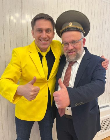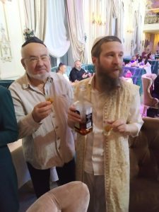Artur Livshyts (co-founder of The Together Plan and Chair of the Religious Union of Belarus) on the left and Rabbi Mordechai Raichenstein, Chief Rabbi of Belarus on the right – Purim 2024