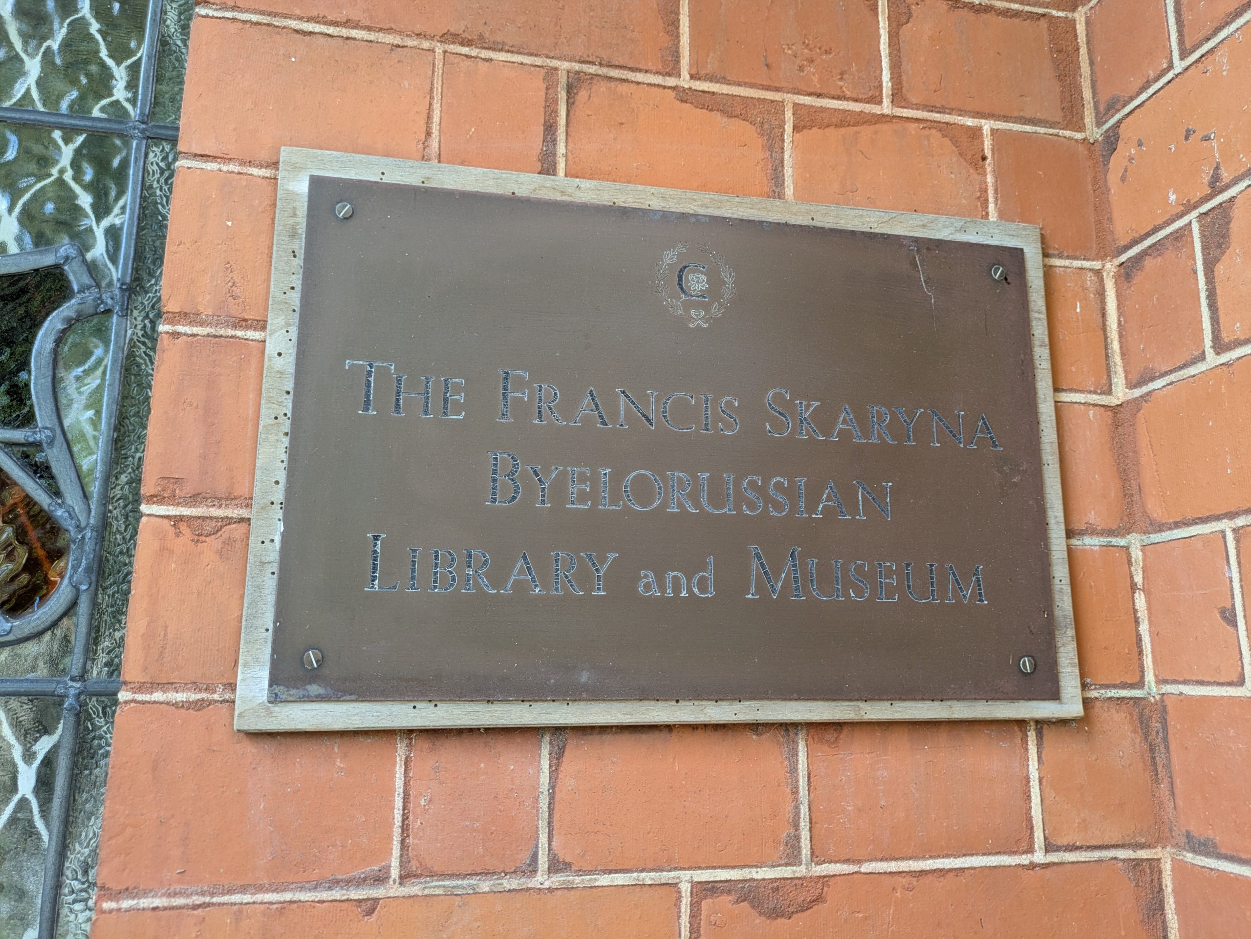 - The plaque on the doorway of The Francis Skaryna Byelorussian Library and Museum
