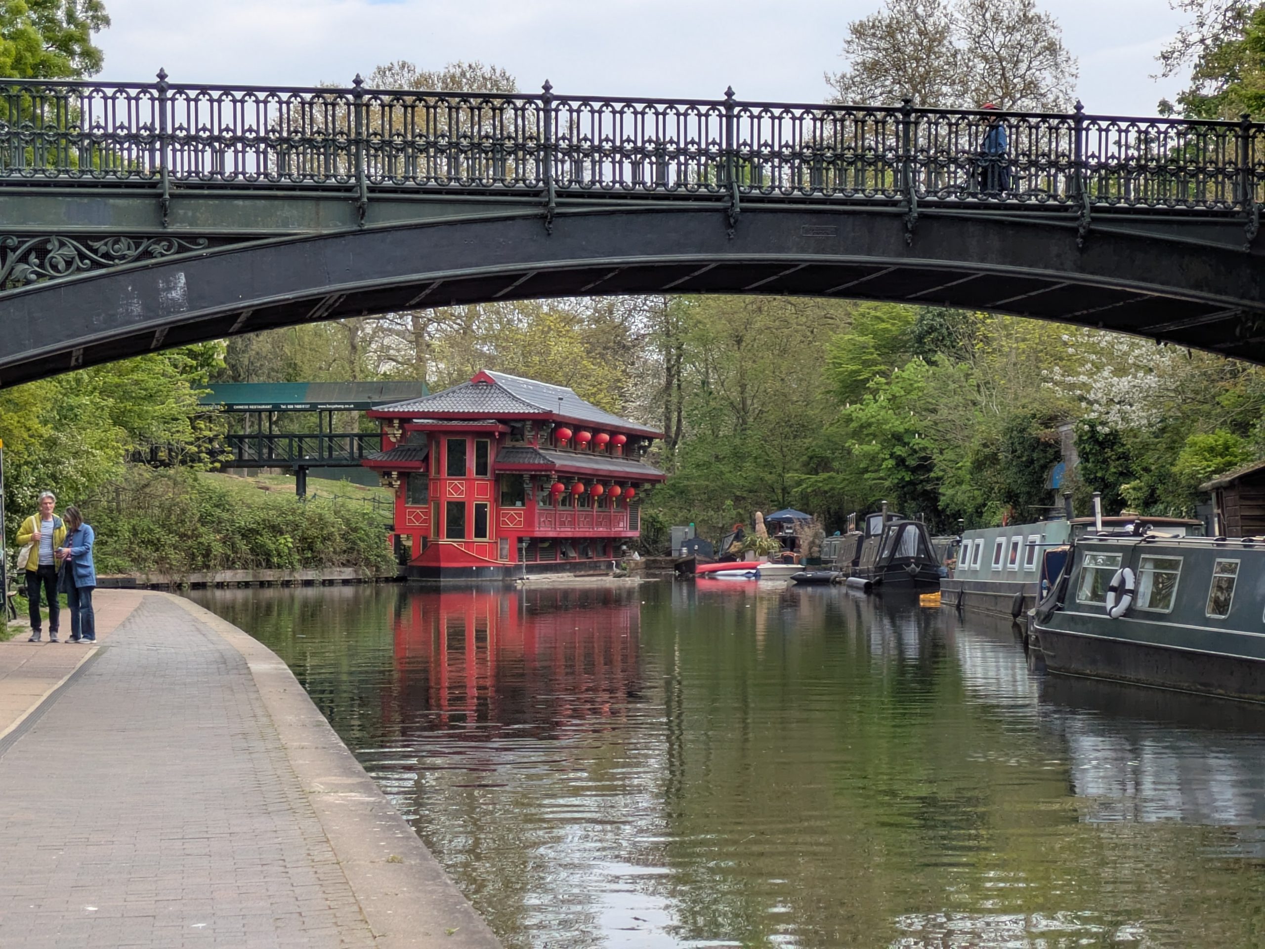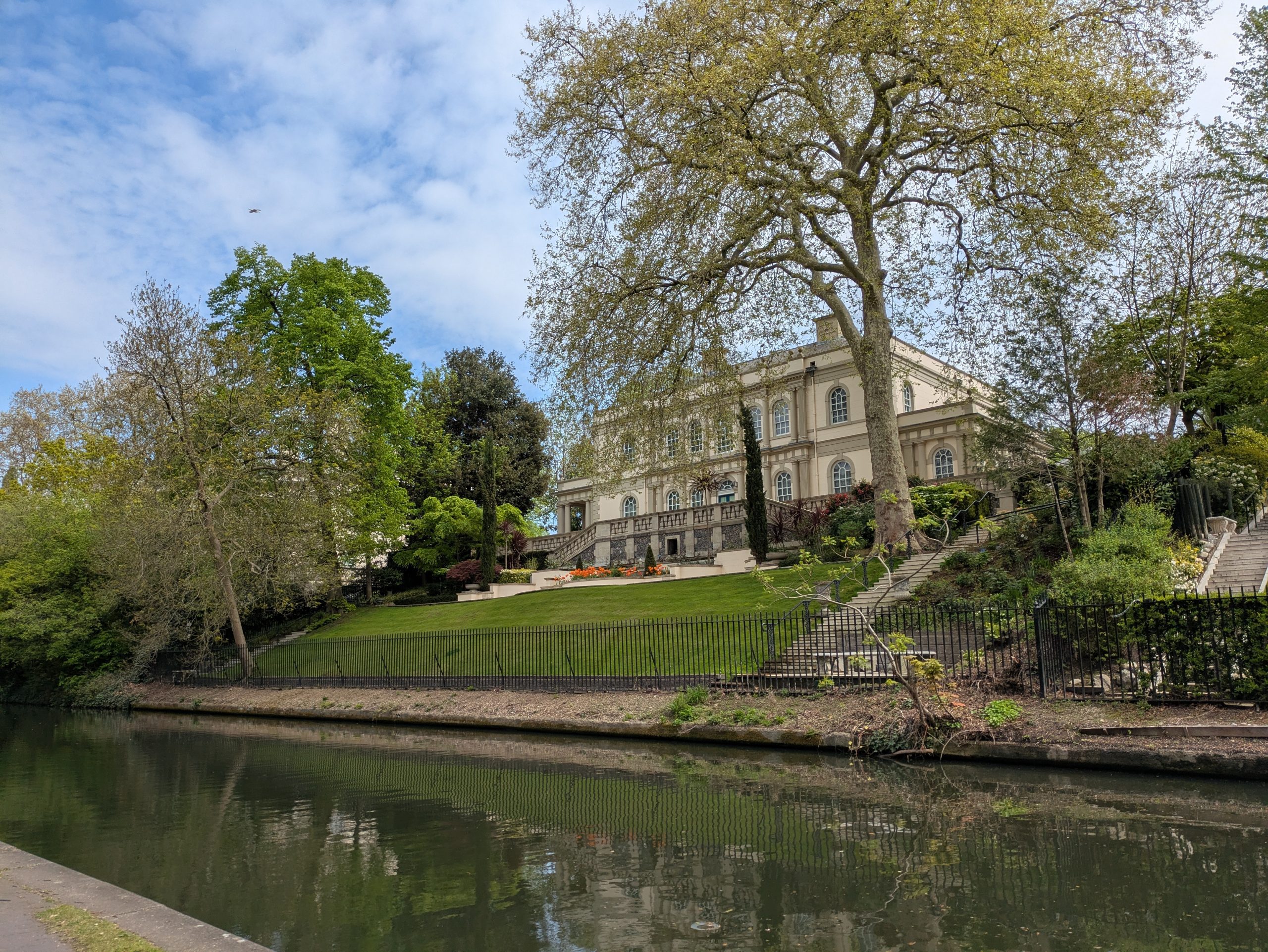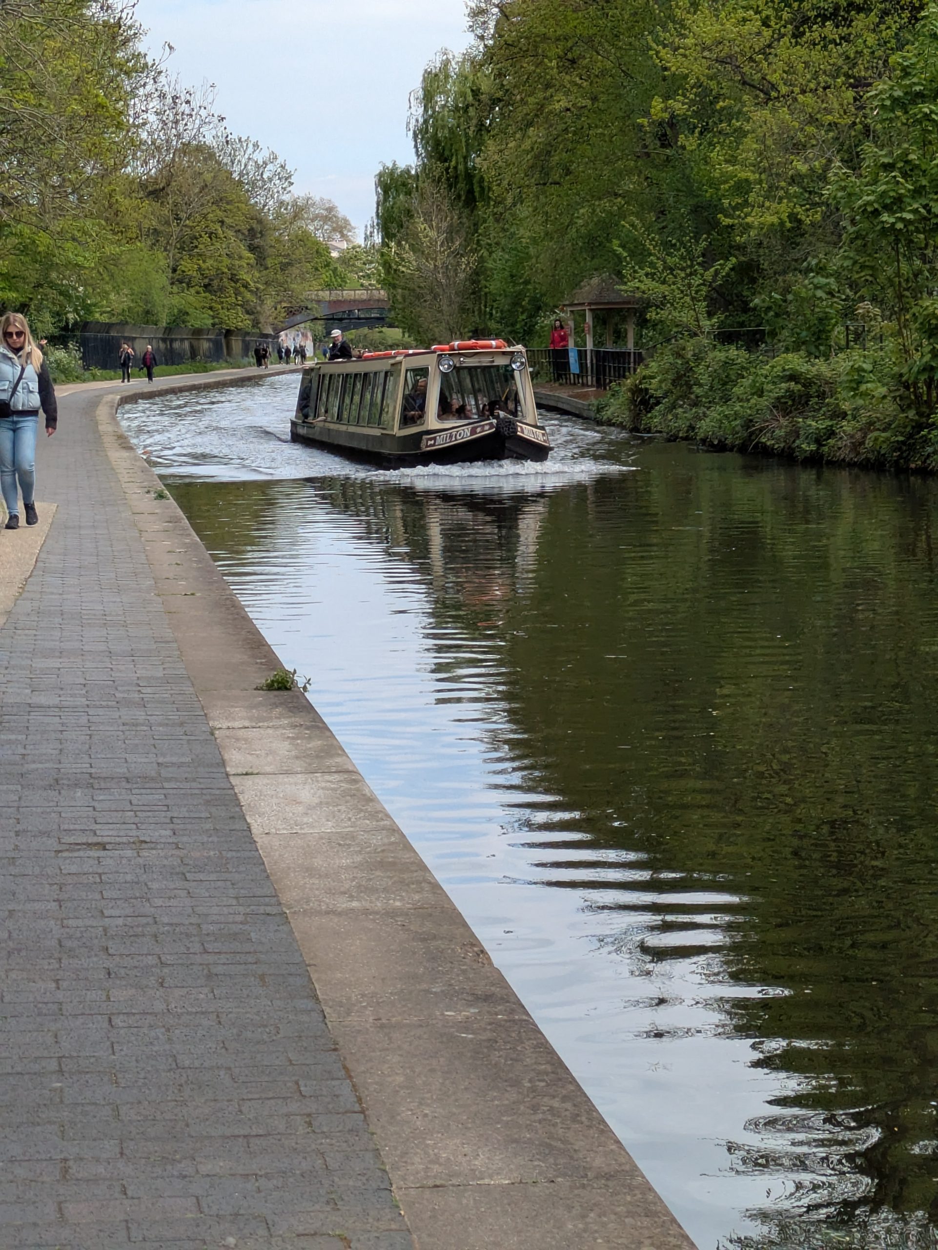 The weather couldn’t have been better—bright, sunny, and perfect for walking. For the first five miles the roads were quiet, with few people out and about in the suburbs of London on Easter Sunday, but as I got further into London the pace of life got busier! I passed swarms of tourists snapping pictures at the iconic Abbey Road zebra crossing, but then I ducked off the main road to join the Regent’s Canal path. On one side, peaceful moored barges. On the other, stately English houses. And then, a surprise—while passing the Snowdon Aviary at London Zoo, I spotted a monkey just chilling up on one of the look outs! The infamous aviary has now been transformed into the aptly named Monkey Valley – so of course I spotted a monkey!