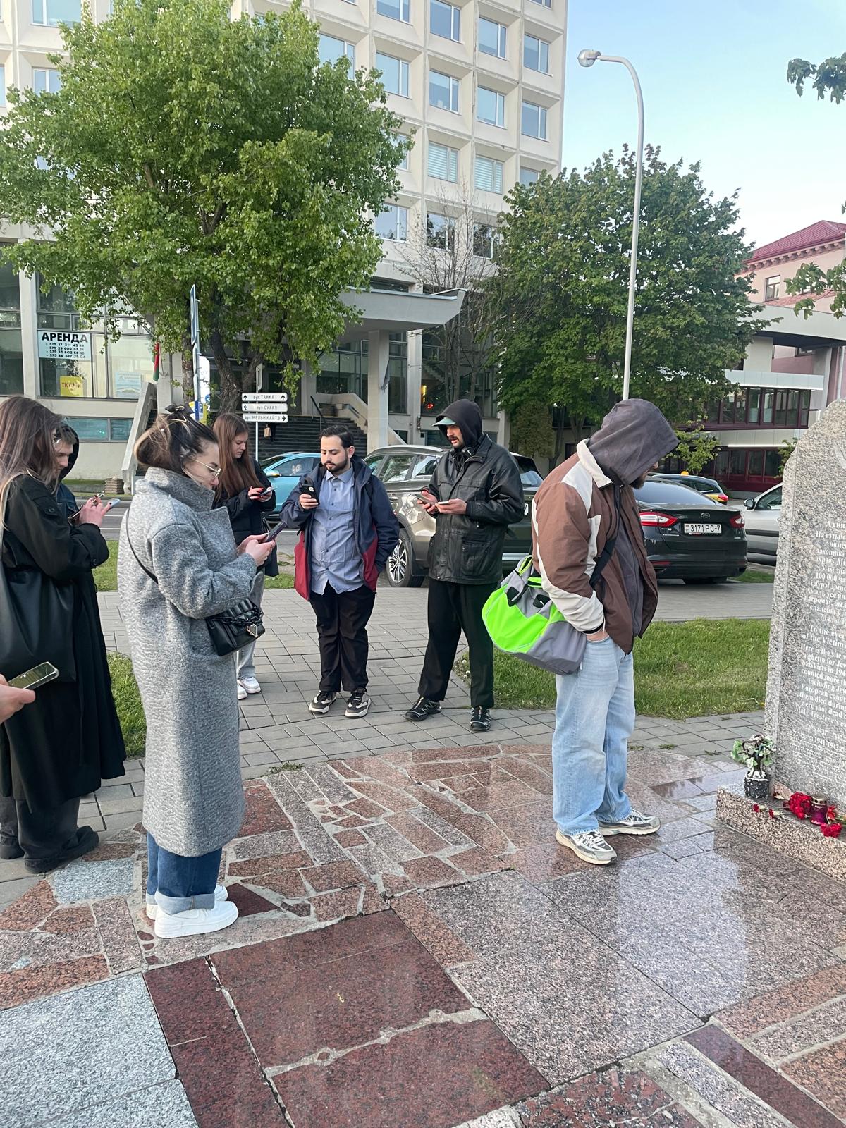 - Gaming Lab participants near the Kitaevskaya Synagogue in Minsk/ Photo credit: The Together Plan