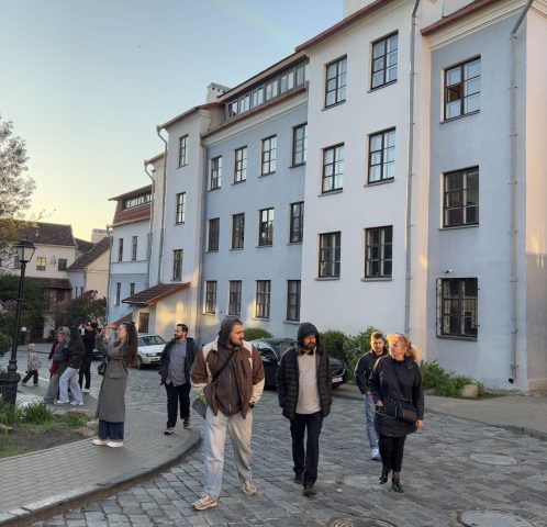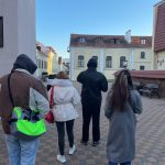 - Participants of the gaming lab, waking through Minsk’s Trinity Suburb. Photo credit: The Together Plan