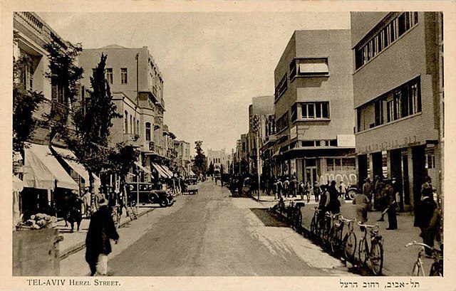 - Tel-Aviv Herzl Street 1930s Photo credit: Edition Moshe Ordmann, Public domain, via Wikimedia Commons