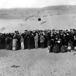 - The 66 families, members of the “Achuzat Bayit” house building association, drawing lots for the 60 plots on which to build, on the 12-acre piece of land the association had acquired. Photo by Avraham Soskin, April 1909Avraham Soskin, Public domain, via Wikimedia Commons {{PD-US}}.