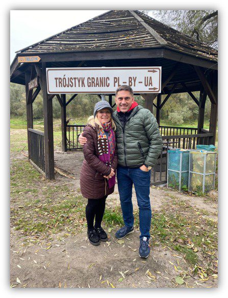 - Debra and Artur 2023 at Trojstyk Granic the border in Poland where the borders of Ukraine, Belarus and Poland intersect