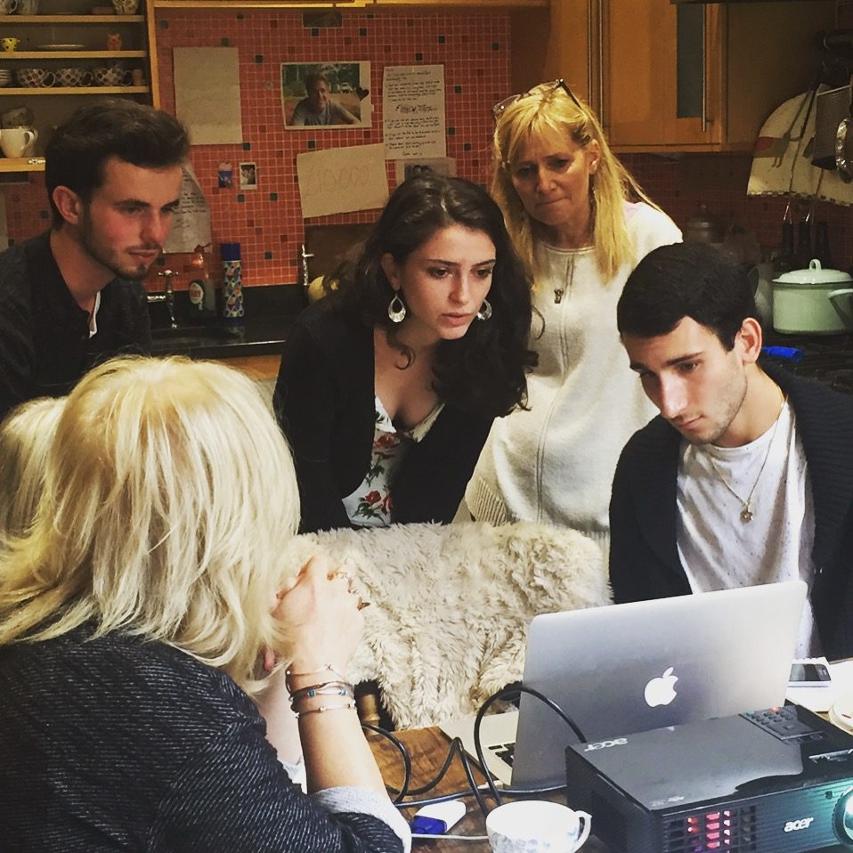 - Debra with youth ambassadors interviewing Polina Dobkina (Minsk Ghetto survivor) on Skype as research for “We Remember.”