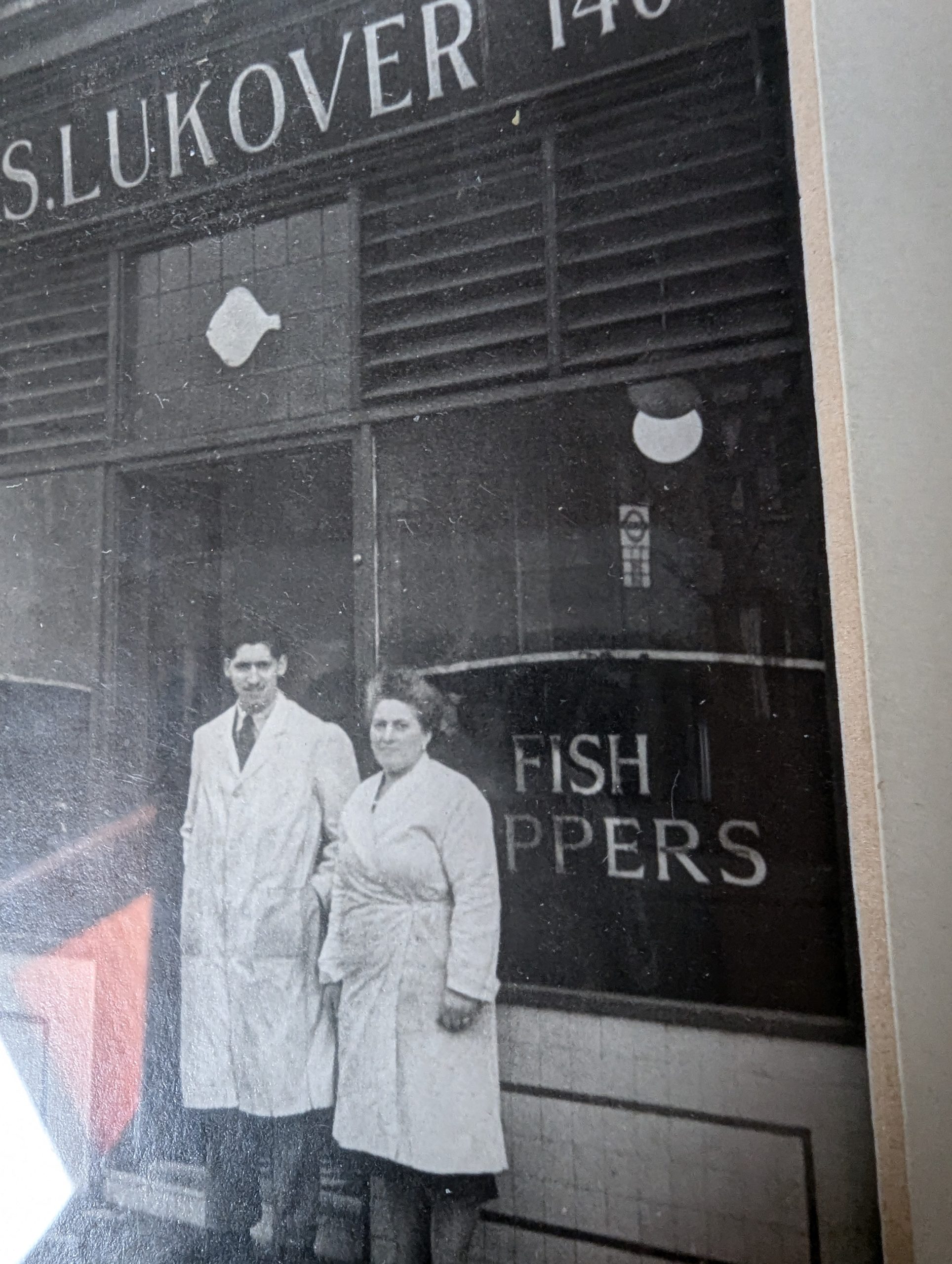 Rachel and Samuel immigrated to the UK in the 1920s. After marrying in Poland, the couple temporarily moved to Paris, where Samuel continued his craft as a shoemaker and thrived in the Parisian artistic cultural life. However, Rachel’s relatives urged them to come to England due to the rising dangers for Jews in Europe. Samuel eventually agreed and reluctantly left Paris and his craft behind. When the couple moved to London, Samuel joined the family fish business as a way to earn money, a field in which he remained through the rest of his professional life.