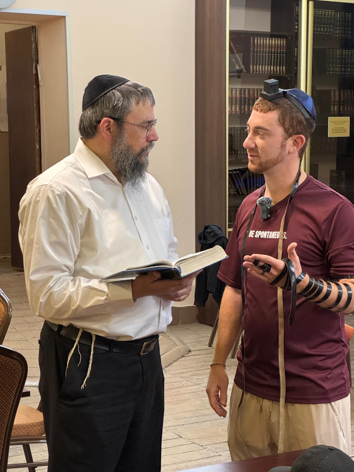 - Drew Binsky laying tefillin at the Ekdesh Synagogue, Brest