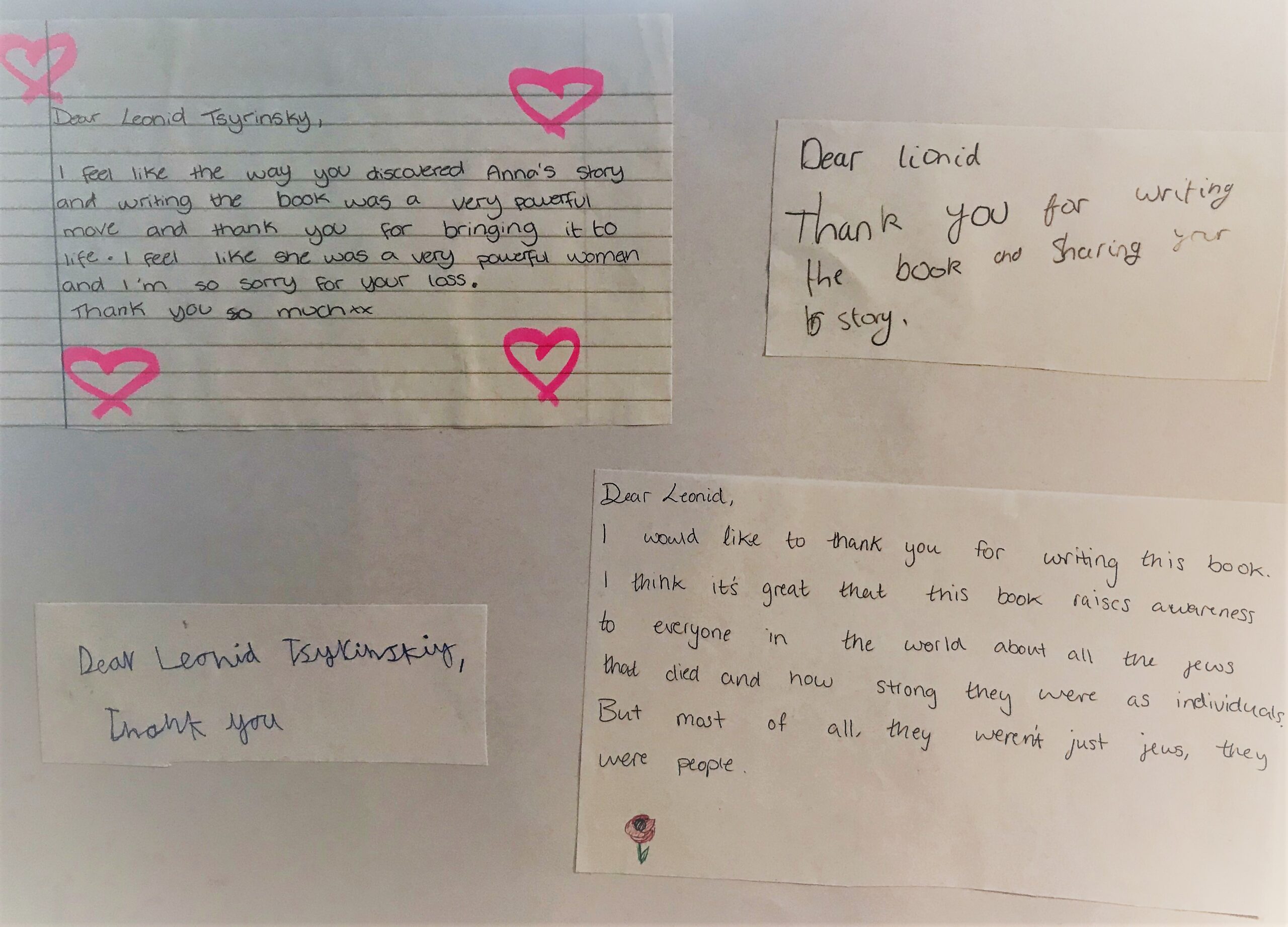 The book has now been presented to Leonid Tsyrinskiy. The presentation not only came as a total surprise to him, it was a deeply emotional and moving moment. That hundreds of children in the UK now knew about the bravery and heroic deeds of his beloved aunt was nothing short of miraculous and that they had taken the time to write and that their teachers had collated them into a book for him, was deeply moving. Leonid, now 81 years old, never believed anyone would ever learn about Anna Machiz, or that people would learn about the atrocities of the Minsk Ghetto.