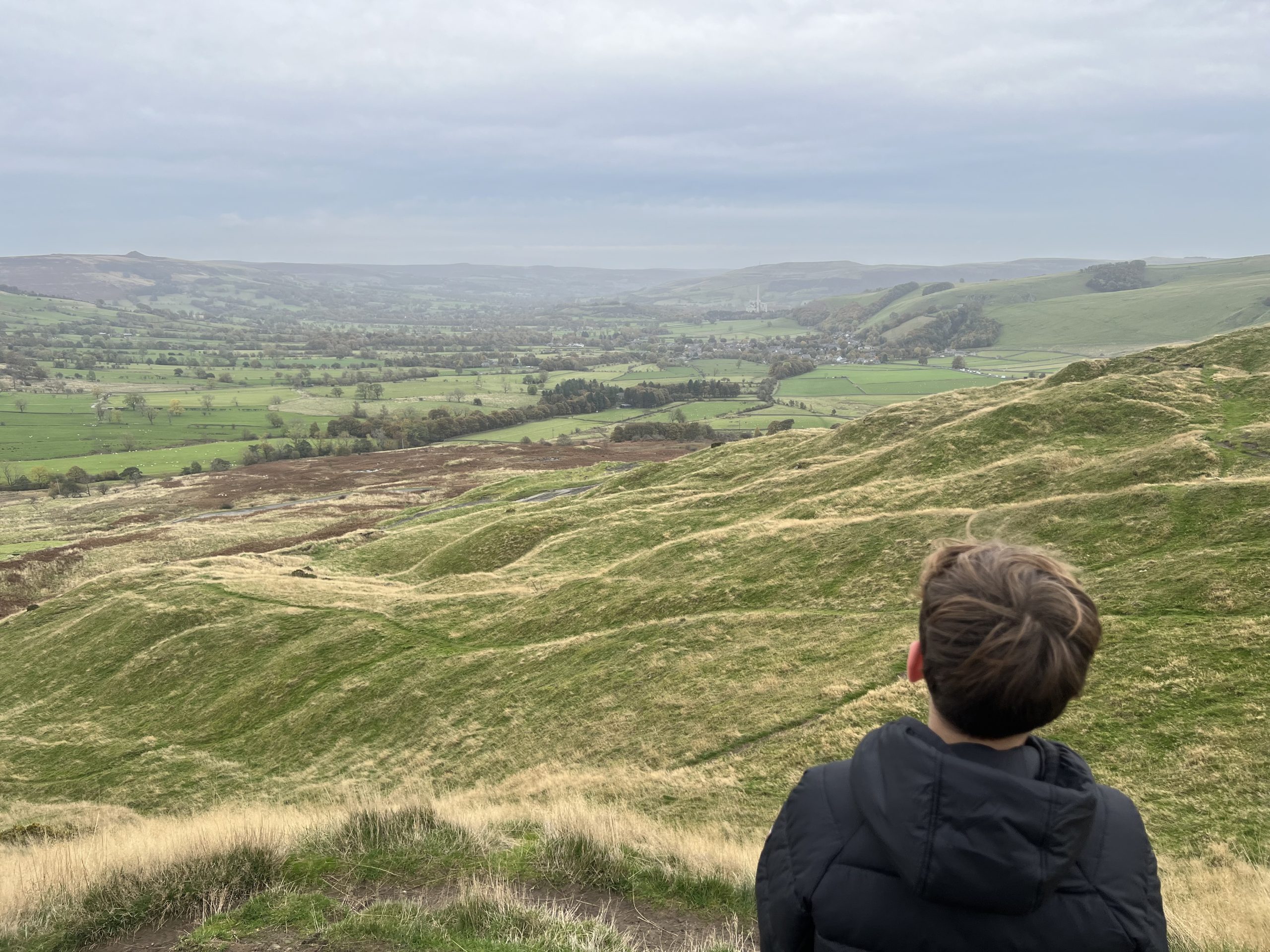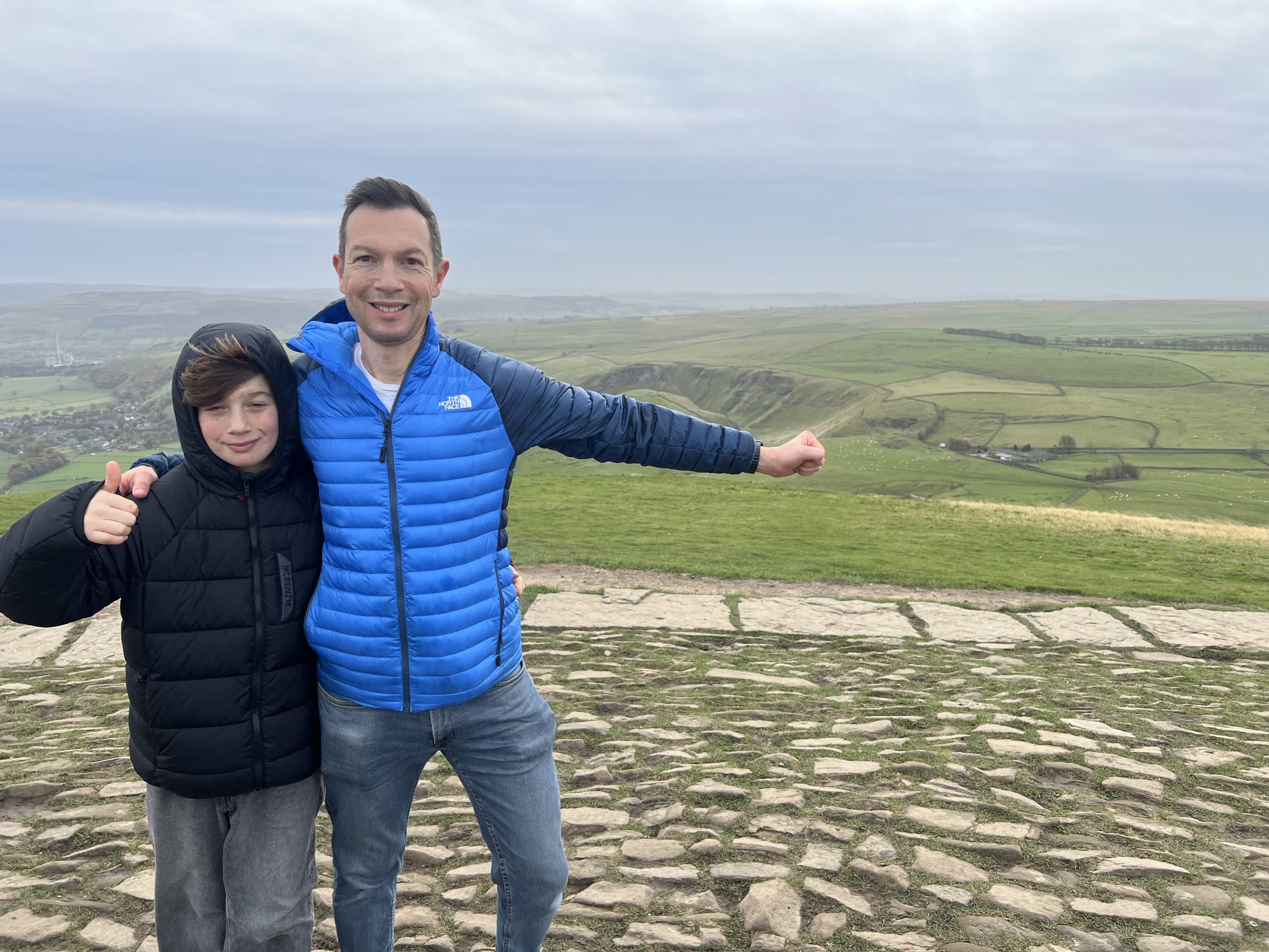 - Isaac with his dad Dan having reached the top of Mam Tor