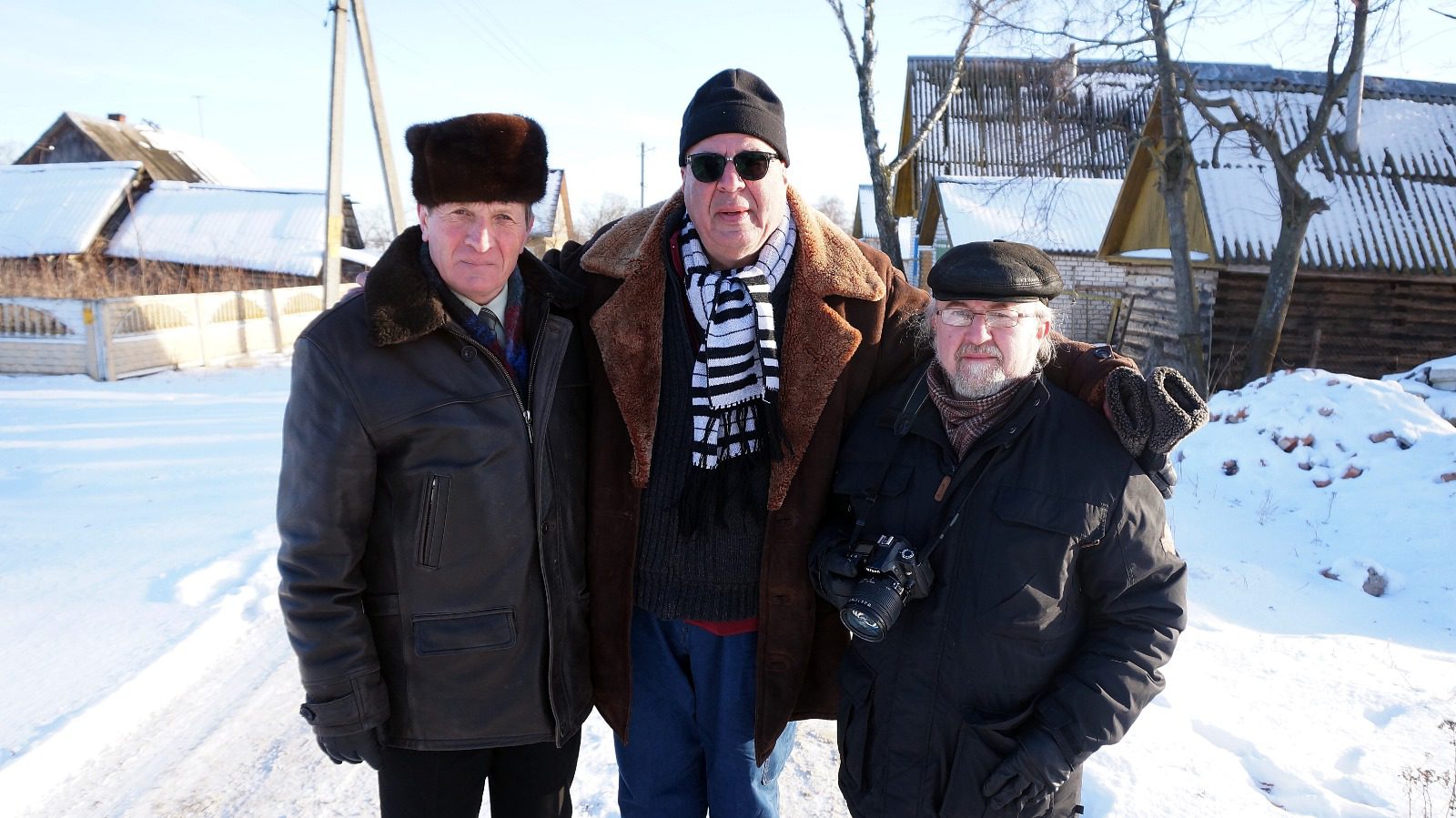 On site in Suhari, Belarus, during a field visit for the project. Pictured: Boris Maftsir (center) with cinematographer, Ron Katzenelson, and others involved in the visit. Photo with permission of Boris Maftsir