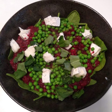 Stir through the peas, check seasoning and crumble over the goats’ cheese.