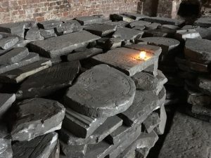 Salvaged Jewish gravestones from Brest-Litovsk Jewish cemetery 2015 Photo credit – Debra Brunner