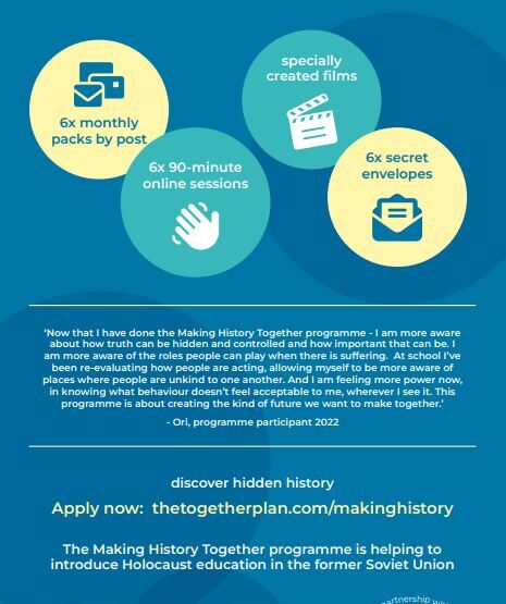 The second exhibition in Russian will be sent to Belarus in 2023. In Belarus, currently there is no official Holocaust education, even though 800,000 Belarusian Jews were murdered between 1941 and 1944. This is vitally important history that has remained in the shadows for too long and through our programme we are bringing it into focus. We are delighted that this year we had a programme participant join us from the USA and the plan is to bring more people together across borders as the programme grows.