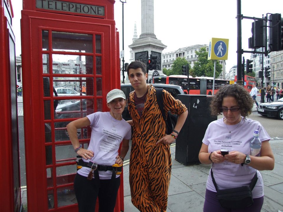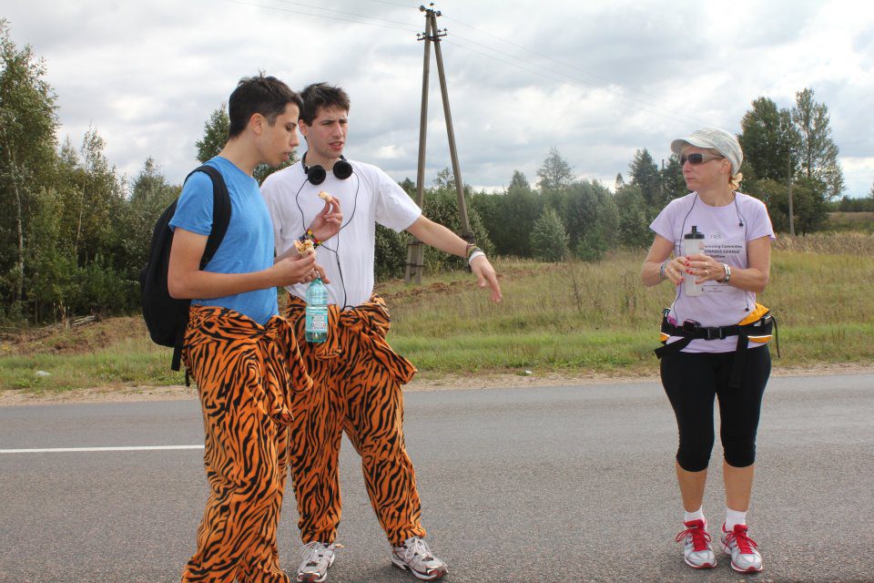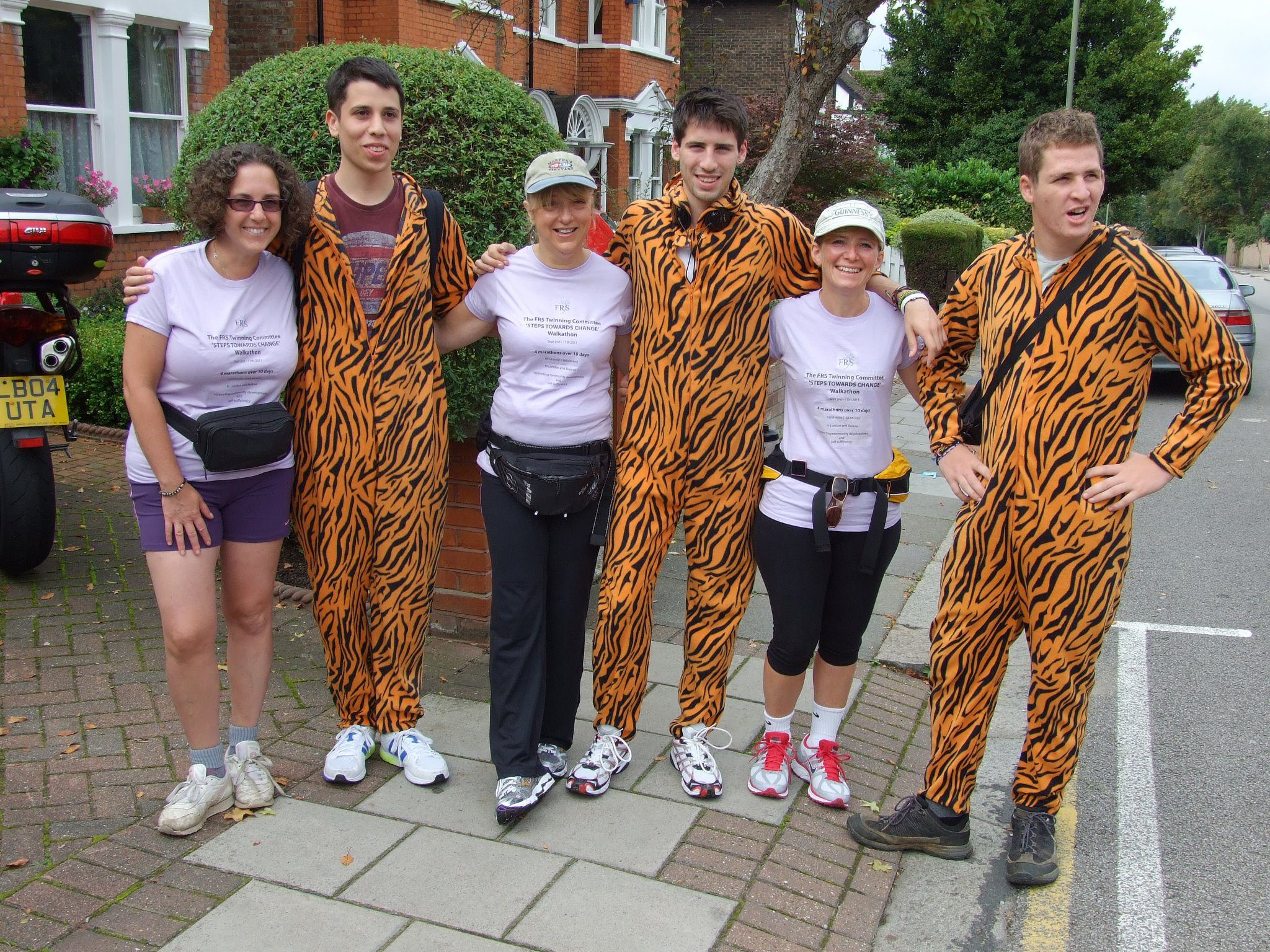 By 2011, I put my walking experience to the test with my own power walking marathon to support a neglected Jewish community in Polotsk, Belarus, which I had twinned with Finchley Reform Synagogue. This time, I set myself an even bigger challenge—four marathons in a week. Three in the UK and one in Belarus, where I walked alongside members of the Polotsk community. One of my London marathons saw members of Finchley Reform Synagogue joining me in training, including my son Jacob and his friends (who walked in Tiger onesies), who were playing lead roles as active youth members at Finchley Reform synagogue at the time. I can’t believe they are now all grown up and married!