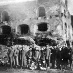 - Jewish partisans from Nieśwież in front of the destroyed Kalter Shul (Cold Synagogue) on Michaelisz Street on 2 March 1946 A battle with the Germans took place in and around this synagogue and a number of partisans were killed. From right Sergowitz, Kron, Lampert, David Farfel, Opiczinsky, Gershon Farfel, Rachel Yasinowsky, Negdiman, Yasinowsky, Michael Kutz, Baskir, Gurewitz, Gershon Pines. Seated Negdiman’s sons. Image credit: Yad Vashem Photo Archives Fo6120