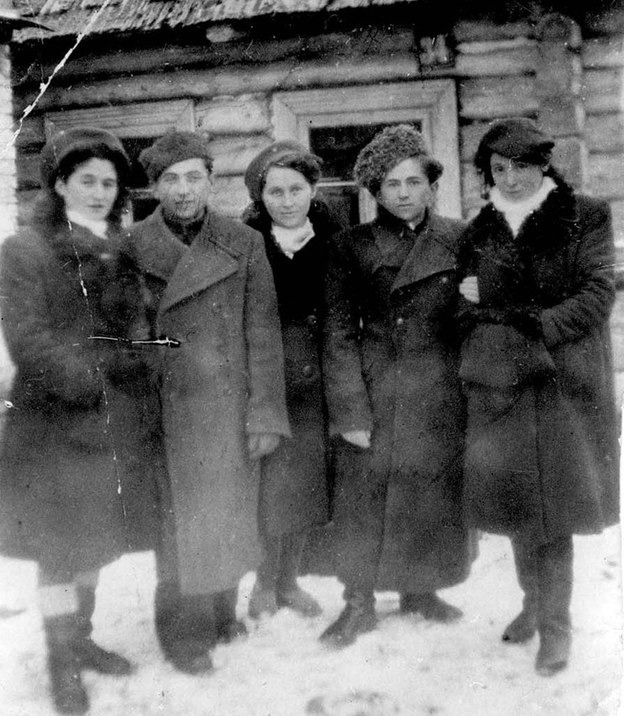 Yehudit Mirski (right) with her brothers and sisters in Nieśwież after liberation After the liquidation of the Nieśwież ghetto, Mirski survived in the Volozyn, Mir and Naliboki forests, and by joining the ranks of the partisans. Photo credit: Yad Vashem Photo Archives 1869/1028
